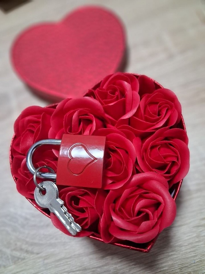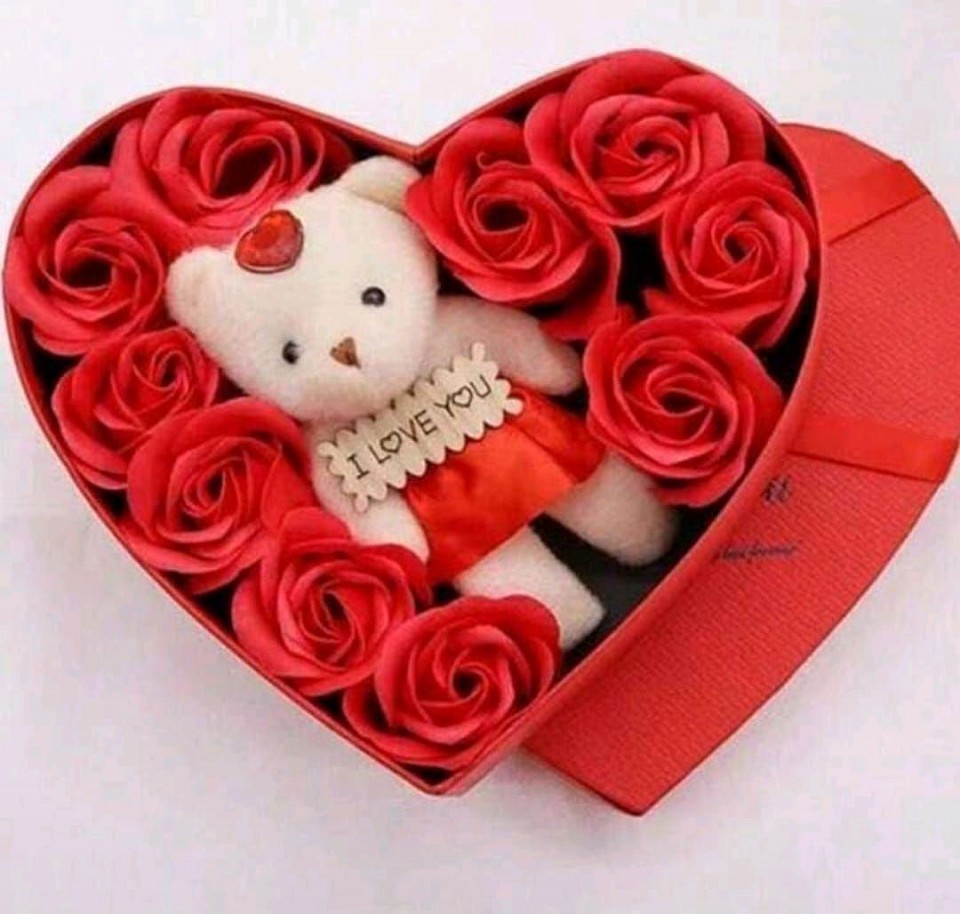 Liebesbox: Herzboxen/boxen mit Seifenrosen für die Badewanne und einem süßen kleinen Teddy als Liebeserklärung dazu